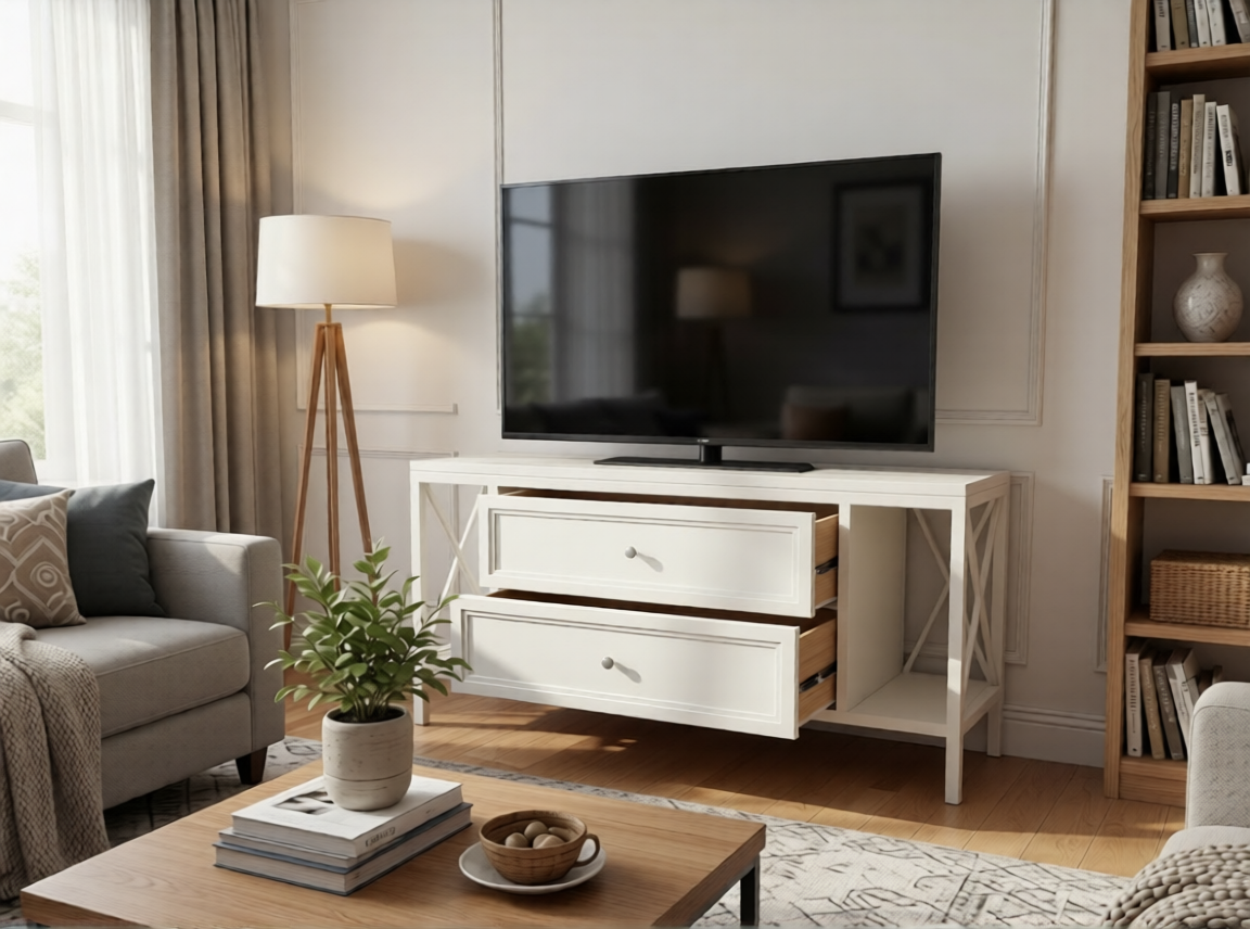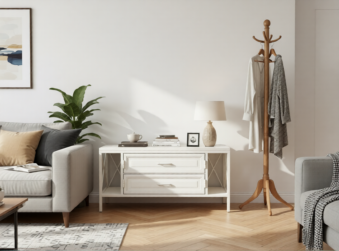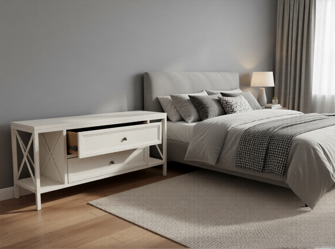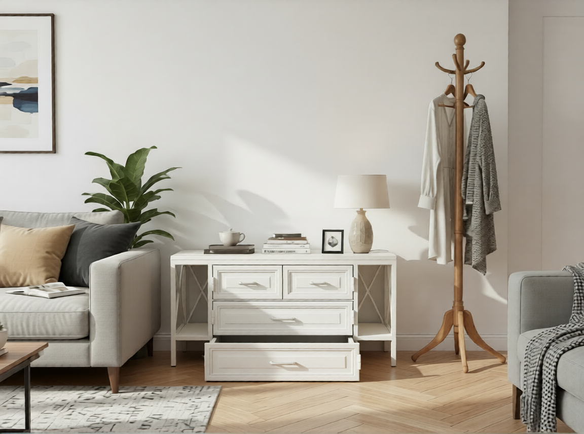 - Функциональность: Несколько вместительных полок обеспечивают удобное и организованное хранение. Прочная столешница 40мм идеально подходит для размещения декора, книг или светильников.